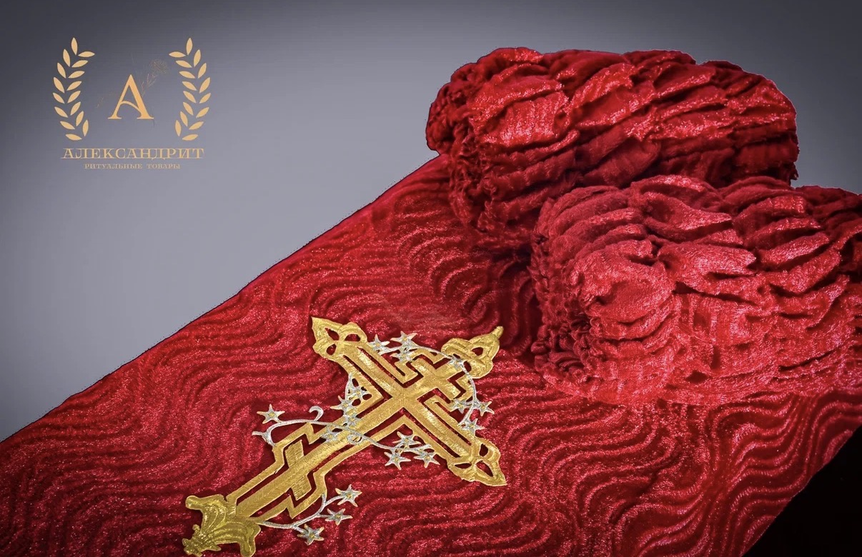 Чехол на гроб «бархат Барашек+парча Огурцы»